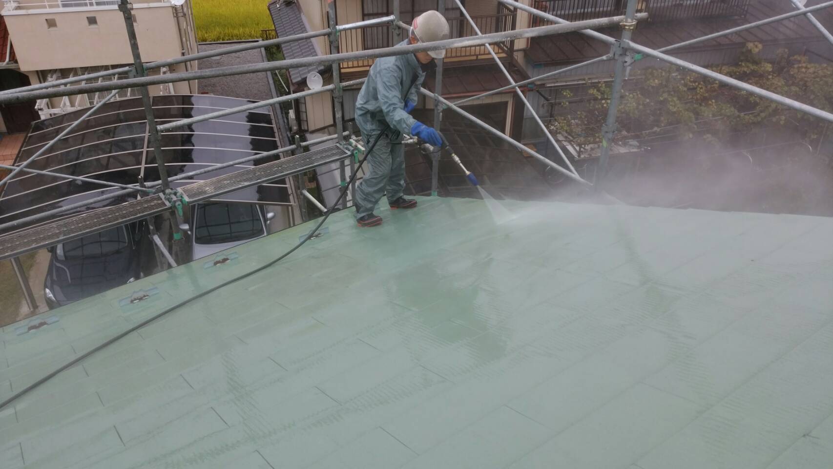 藤岡市 個人様邸 屋根外壁塗装工事始めました! 今日は高圧洗浄です。