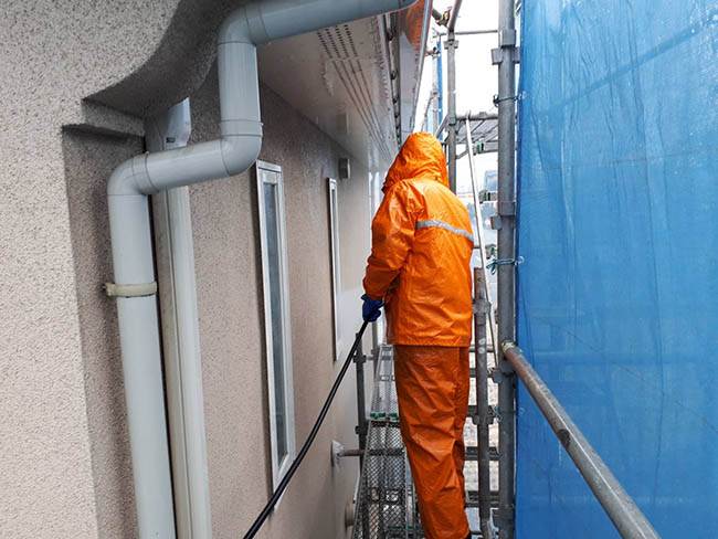 藤岡市 個人様邸 外壁塗装工事始めました。 今日は高圧洗浄です。