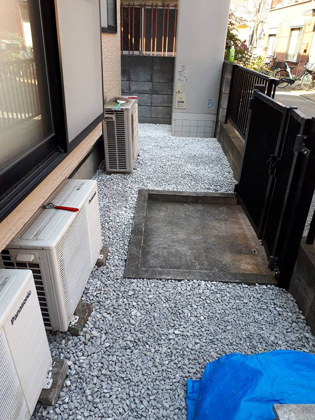 今日は東京で石灰砂利を敷いています。