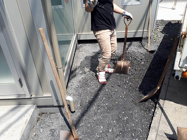 川口市 砕石を入れ替えて石灰砂利を敷きます。