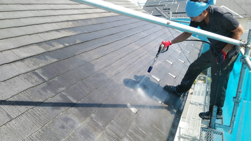 屋根洗浄中です