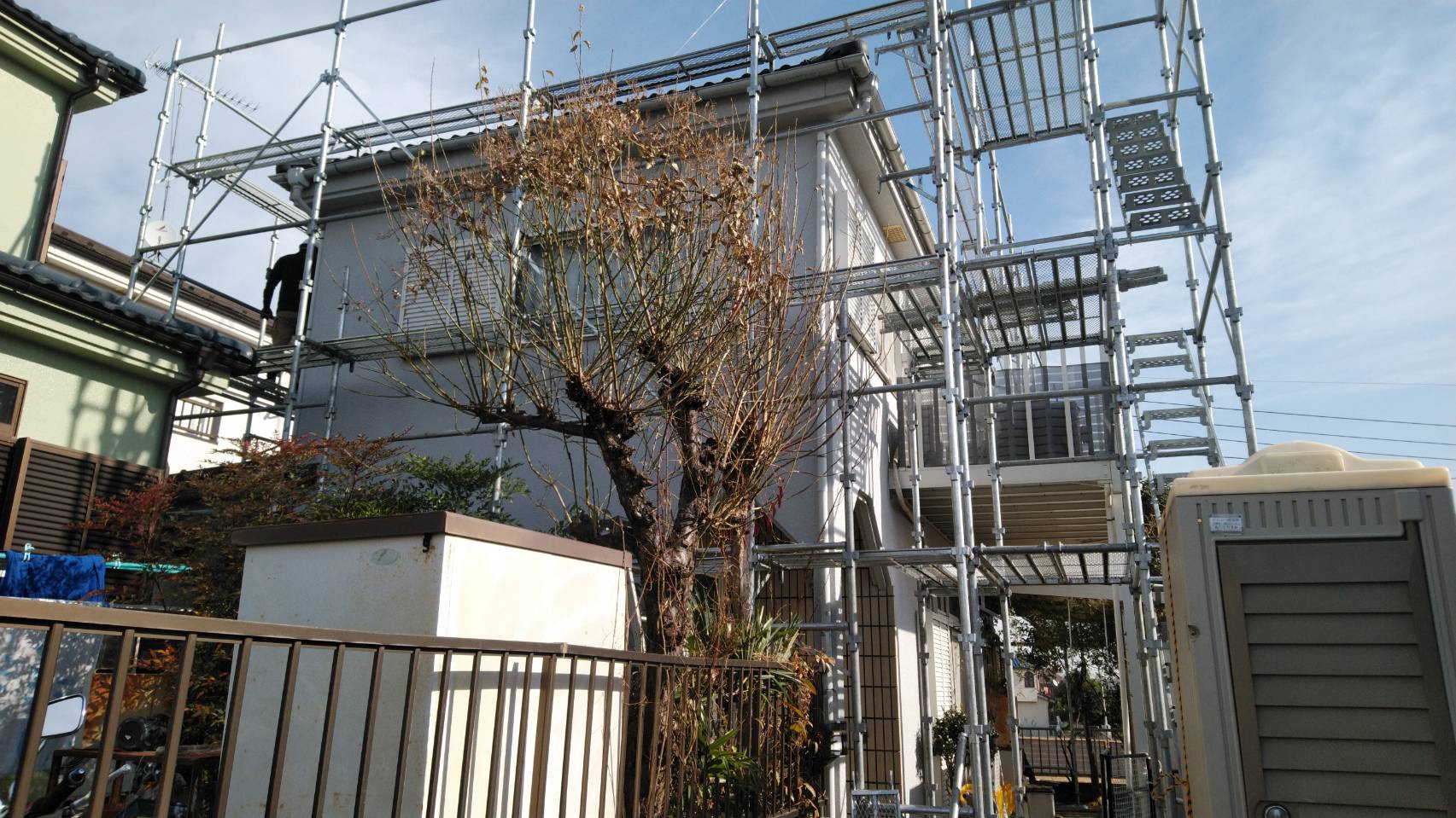 今日から仕事始めです。飯能市双柳で足場工事をしています。