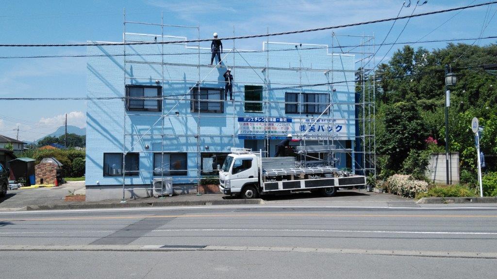 前半天気が悪くてだいぶ遅れてしまいましたが、ようやく終わり本日足場解体です。