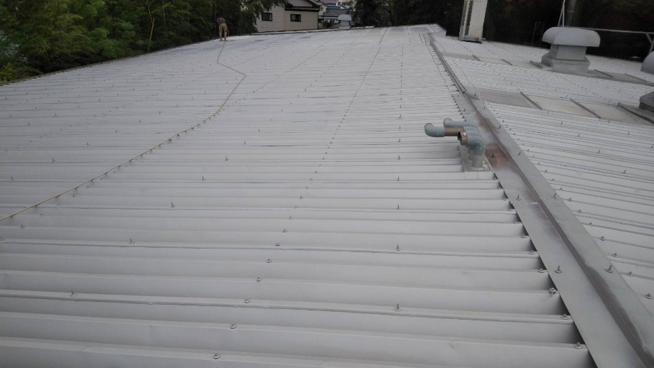 前橋市 倉庫 屋根塗装下塗り完了です。