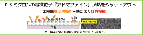 半導体などの精密機器排熱技術にも利用されている、光や熱を遮熱する世界最高峰の特殊セラミック『アドマファイン』を使用した驚異の遮熱塗料です。